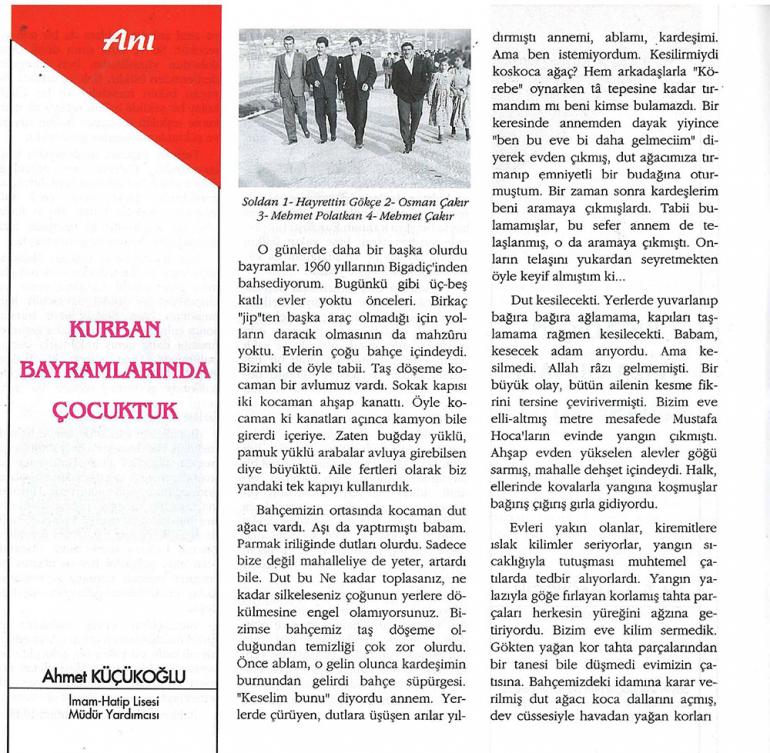 60'larda Bayramlar / Ahmet Küçükoğlu / Bigadiç Dergisi / Bilgi Peşinde / www.bilgipesinde.com / O günlerde daha bir başka olurdu bayramlar. 1960 yıllarının Bigadiç'inden bahsediyorum. Bugünkü gibi üç-beş katlı evler yoktu önceleri. Birkaç "jip"ten başka araç olmadığı için yolların daracık olmasının da mahzûru yoktu.
