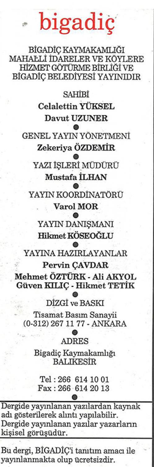 Bigadiç Dergisi'nin Mayıs / 1996 tarihli 3. sayısındaki yazıdan alıntıdır.